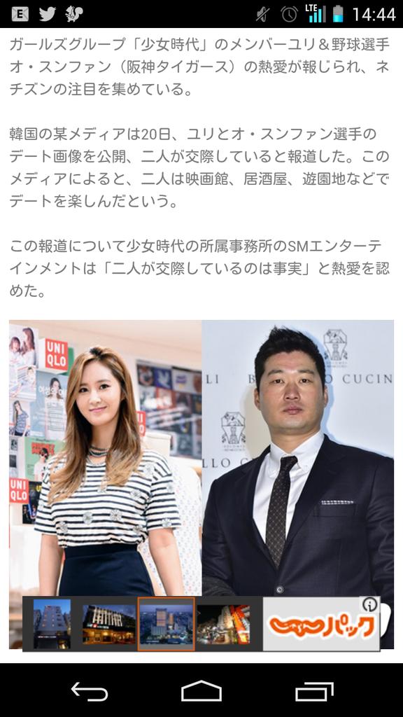 RT @kor_celebrities: ディスパッチ、少女時代ユリと阪神・呉昇桓(オ・スンファン)投手のデート写真公開。media.daum.net/entertain/star… pic.twitter.com/iSw2DppBv4