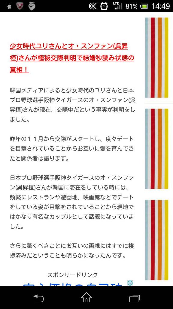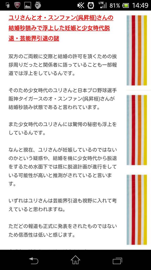 応援はするけど、ユリちゃんにはもっといい男がいただろうに…( TДT)”@gg_k_pop_fan: 少女時代に関するニュースを追加!少女時代 ユリ、阪神タイガースの呉昇桓(オ・スンファン)投手と熱愛報道 ift.tt/1D41F7w“