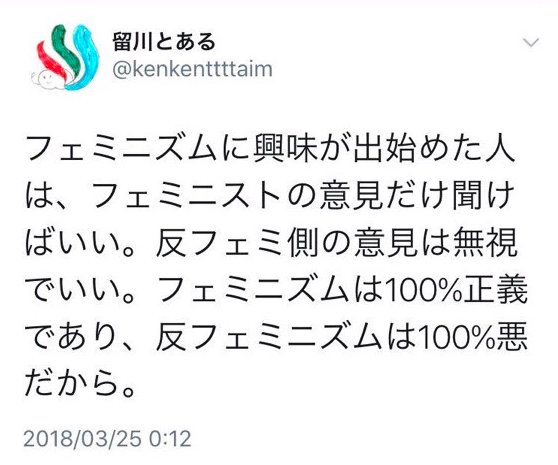 これ男だろうと女だろうと関係ないしそれを揶揄してなにがフェミニストなん???って感じだな