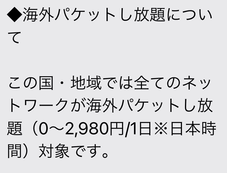 海外到着時にパケ放案内が来る時のように詳細のHPを記載するべきだと思う。