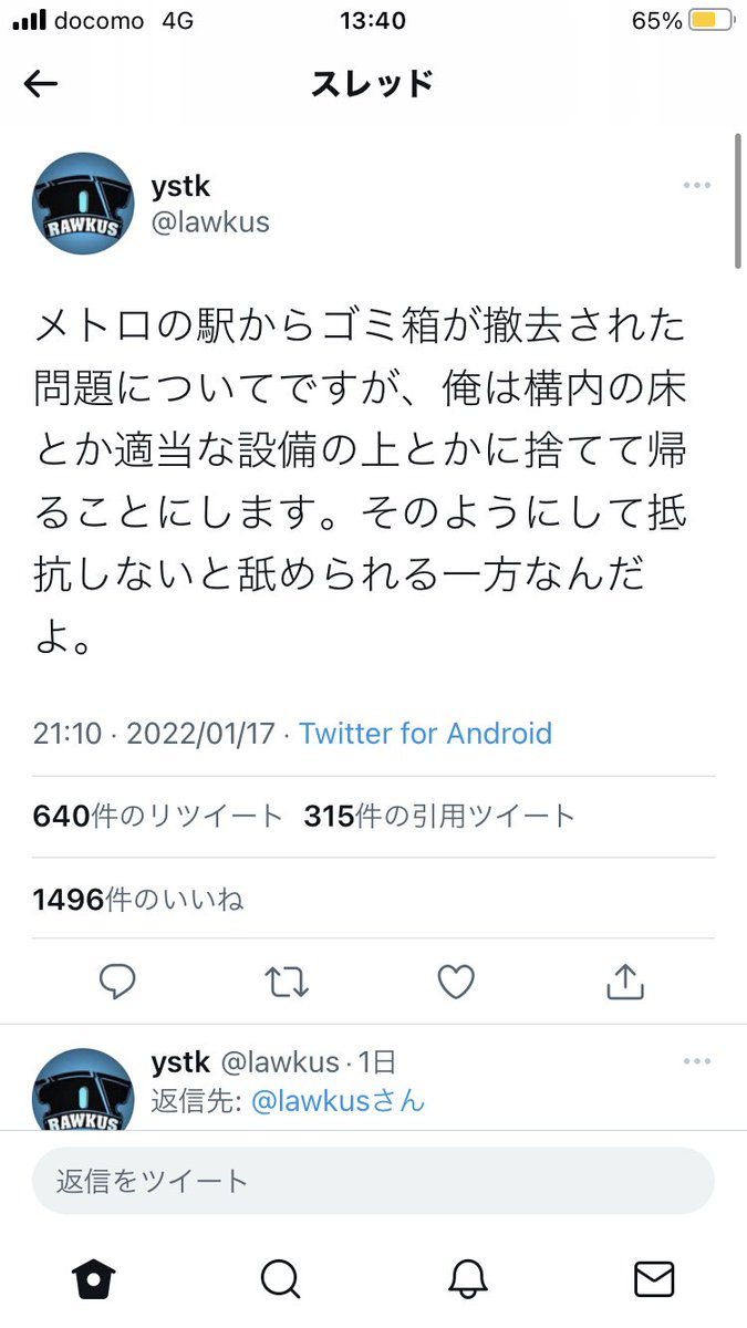 そういう話はどうでもいいから、公共の場からゴミ箱が消えてる事実に向き合ったほうがよい https://twitter.com/kakimasa555/status/1483661949288480768 …