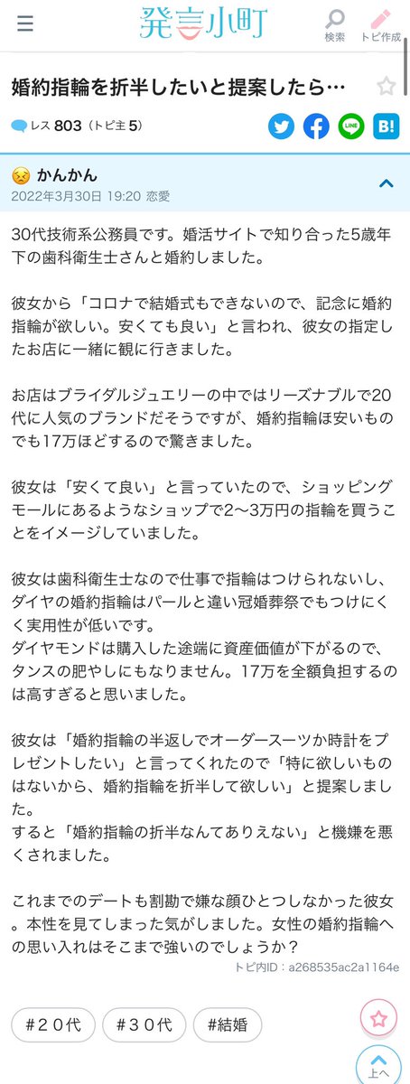 てか婚約指輪最低でも100が当然かと思ってた? https://twitter.com/nyannyan_popopo/status/1510776066478018564 …