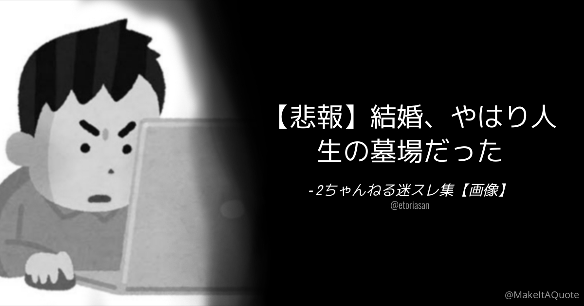 ツイッター 【悲報】結婚、やはり人生の墓場だった writer11 2022年7月30日 / 2022年7月30日 2ちゃんねる迷スレ集【画像】@etoriasan【悲報】結婚、やはり人生の墓場だった pic.twitter.com/nhdboNbtER2022/07/28 07:02:00 ヤッケン(Y’AKKEN)@PULCHANS18_3@etoriasan 最期まで愛を尽くすが男だろ?2022/07/28 18:39:12 HK@hklovesu@PULCHANS18_3 @etoriasan かっこいい2022/07/28 18:55:45 カエデ様@KAEDE_samaaa@etoriasan 結婚というのはどちらかが妥協するしかないんやで後はプライド捨てて嫁の尻に敷かれていれば、とりあえずは上手く行く2022/07/28 17:38:11 Mayu【新垢】@Mayu72391164@etoriasan 『結婚は人生の墓場』では無い。『結婚は人生の戦場』だ。墓場なんて安らかなものでは無いんだよ。静けさとかも皆無!!2022/07/28 16:55:48 にほんとうにほんもち@M0B5nIbx7GDVFfR@etoriasan これ結婚してないやつが他のやつの結婚生活を壊したいが為にこんな画像を集めて未婚の人達、結婚してる人達を不幸に会いたくて見せてくるだけかもしれない2022/07/28 13:55:51 まちお@machiomachida@etoriasan 実は譲られてたんだよ2022/07/28 13:48:54 きなこ@114514nen@etoriasan あれ これ倉敷じゃね2022/07/28 12:51:17 預言者マリッサ@marisa_rosa2525@etoriasan そんなに…2022/07/28 11:54:51 大霜 光生@mitsuoohshimo@etoriasan 妻も思うさ同じ事を。2022/07/28 11:50:32 YUCHI@positiveになる!@iPhone04221933@etoriasan @MakeItAQuoteJP2022/07/28 10:14:07 electrive@i2FkW9rdrv5HjMu@Esuwaikun @megumigogogo @etoriasan 男同士は楽しいぞう笑2022/07/28 12:44:18 ぐみ?❁⃘*.゚@megumigogogo@Esuwaikun @etoriasan 違う、そっちじゃない(←好き)2022/07/28 10:39:24 ?優馬?@y7azf@etoriasan ふかすぎる。2022/07/28 10:54:15 獅子雄@L9aNuK6ZeV9yKRs@etoriasan まあ、誰を選んでも結末はそうは変わらないかもね?2022/07/28 09:19:32 エア冗談@Air_joke_@etoriasan 譲り愛の精神が大事ってことですね笑2022/07/28 07:49:06 やさぐれサラリーマン@FromFreedam@etoriasan 譲る連鎖が続けば必ずまた自分の元に戻ってくる。終わりなき運命。いまはない妻の愛嬌手料理も2022/07/28 07:24:41 ぐみ?❁⃘*.゚@megumigogogo@etoriasan 嫁も「恋敵」とくっついたほうが幸せだったかもね2022/07/28 07:18:11 MakeItAQuote (日本語版)@MakeItAQuoteJP@iPhone04221933 pic.twitter.com/fLyWyTltxA2022/07/28 10:14:21 ひょっこりテイオー フォロバ100‰@mutekinoteio@etoriasan この「smile life」見てると悲しくなってきた pic.twitter.com/qhK8fLUVur2022/07/28 07:17:23 le檬/100フォロバ@le39657768@etoriasan 結婚するってことはその相手と一生を添い遂げるわけだから選ぶ相手って大事よね、 pic.twitter.com/Isrh5z6uQV2022/07/28 07:04:00 AKH ?‿?@OaPxSTEeFoluB1o@etoriasan これもどうぞ pic.twitter.com/BOBRSJ76cU2022/07/28 07:03:57 okaits#7534@okaits7534@OaPxSTEeFoluB1o @etoriasan キャッシュですwww2022/07/28 18:20:46 tsrl_miyakami?❄@TMiyakami@etoriasan 悲しいなぁ( ´・ω・` )2022/07/28 07:03:07 いぇあbot@BOTisYeah@etoriasan yeahは世界を救います2022/07/28 07:02:37 ふぶき姫@未確認生物@fubukiUMA124580@etoriasan 恋愛を諦めて正解だったのかなぁ?2022/07/28 07:12:57