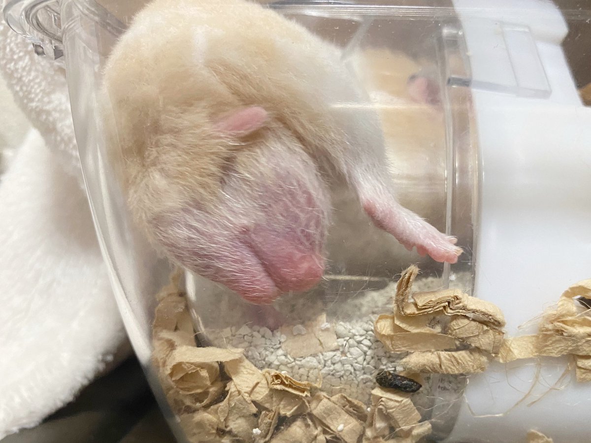 今朝、息子に「ハムスターのお尻が腫れてて病気かもしれん。僕の勘は当たるんや!すぐ病院に連れて行って!!!」って言われたから行ったら……….キンタマだってよ………大きめのキンタマだって…………秒で診断ついたわ。