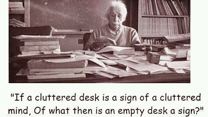 “If a cluttered desk is a sign of a cluttered mind, of what, then, is an empty desk a sign?”