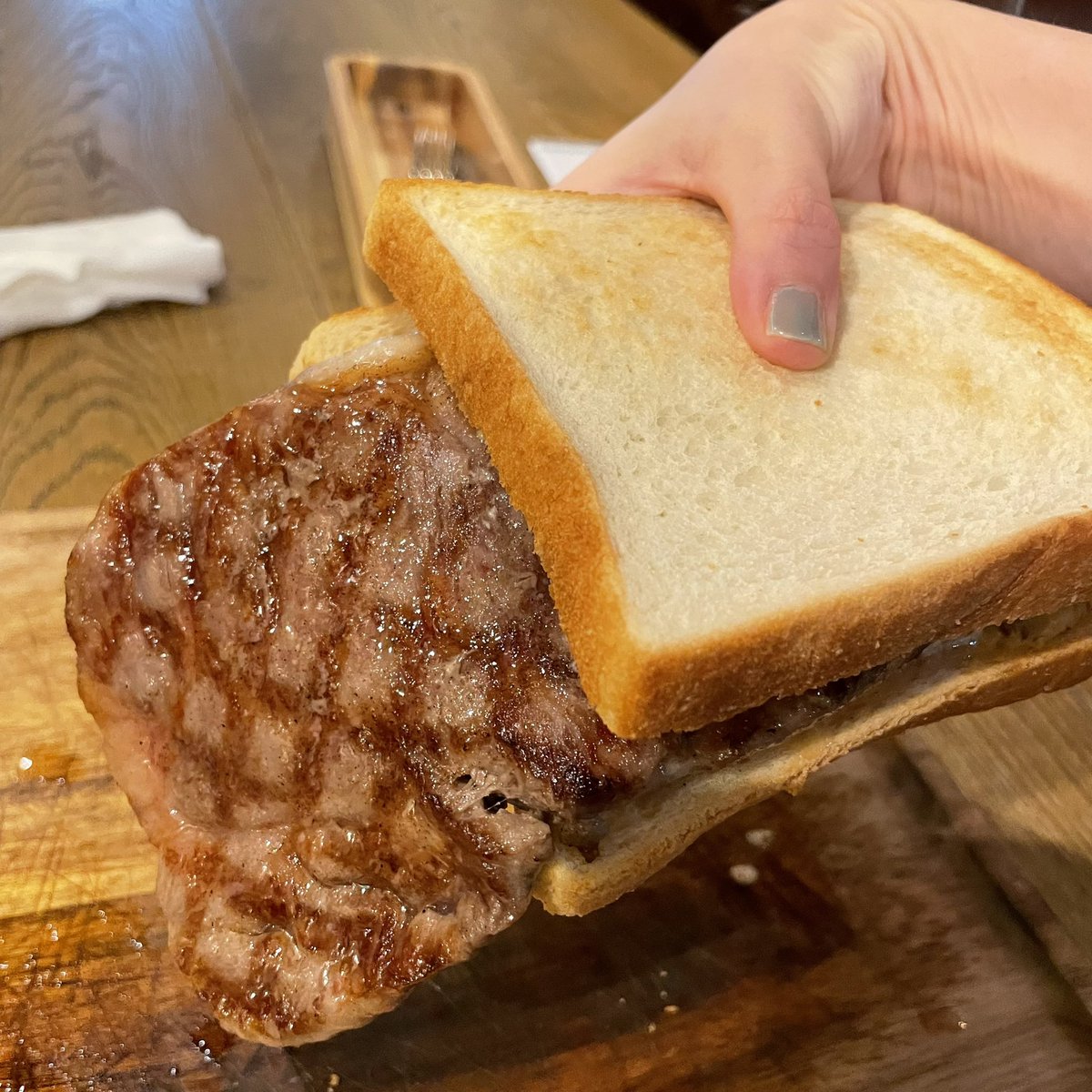 先日すごいステーキサンドを食べました。すごいいい肉をいちばんシンプルに美味しく食べるためにこうなったとか……めちゃくちゃおいしかったです(限定メニューのため注文できる日は限られていてお店からアナウンスがあったときだけ予約限定で出ます) pic.twitter.com/aPTmQdEKT5