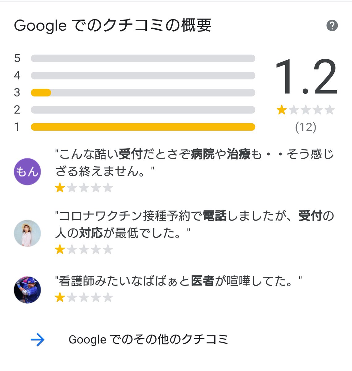 近所の眼科はただただ「対応が悪い」ってだけで1.7を叩き出しているので見習って欲しいな https://twitter.com/GHEERITAN/status/1488484328619134977 …