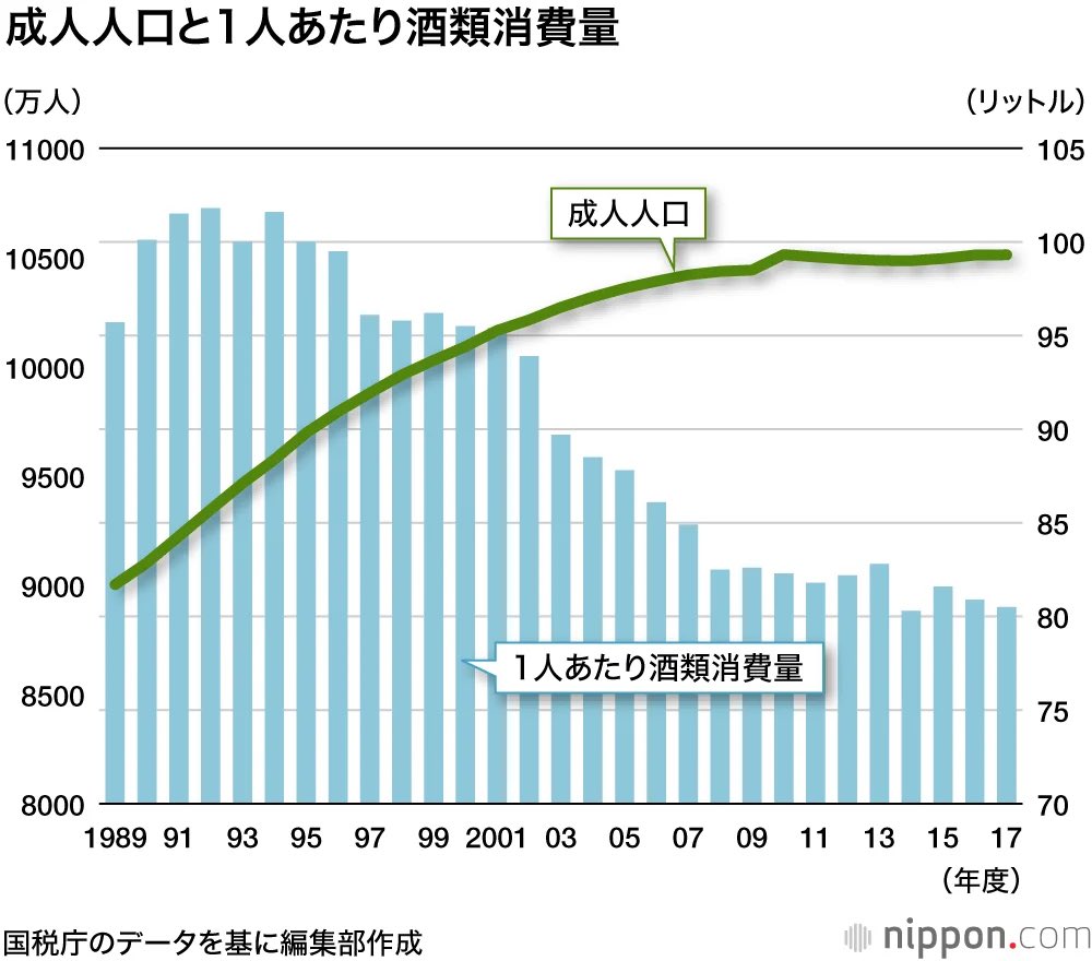 車のデータみて、お酒はどんくらい減ってたっけ?とググったら2割減ぐらいか。これからもっと減るんだろうな。