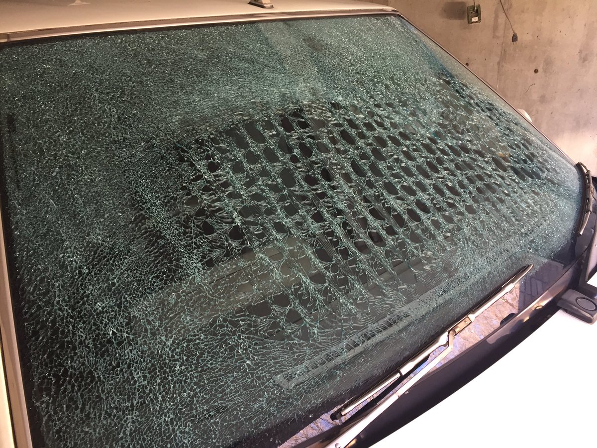 高速走行中に飛び石を食らうとこうなることがあります。そのときは窓ガラスを全部砕いて視界を確保して帰ってきましたが、すんげー寒かったです… https://twitter.com/r30nissan/status/1497155097188761605 …