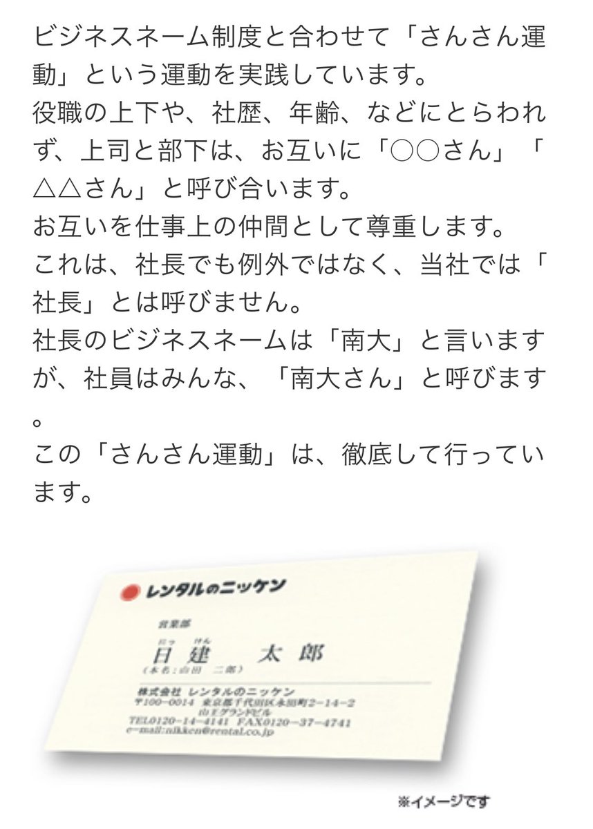 うちの会社も「さん」付け。役職つけて呼ぶのは禁止(鈴木課長、みたいな)。もちろん社長もさん付け。よそから来た人でびっくりする人結構いる。 https://twitter.com/w_coast_0330/status/1443345881898504193 …