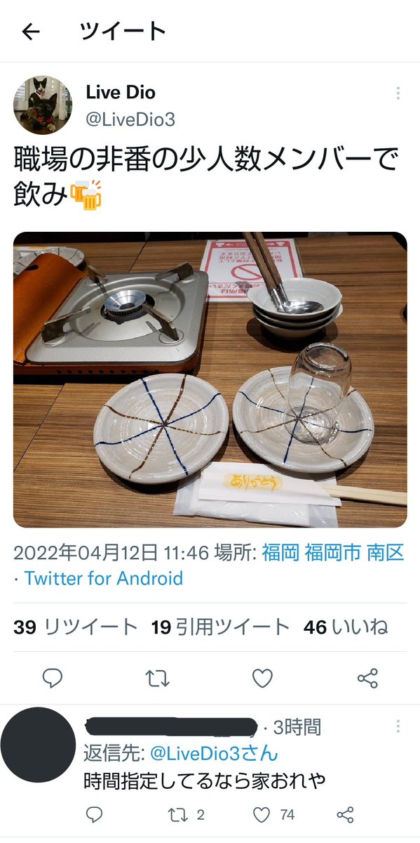 時間指定してんのに飲みに行っといてこの言い草かぁ(;´∀`) https://twitter.com/LiveDio3/status/1513862463942701056 …