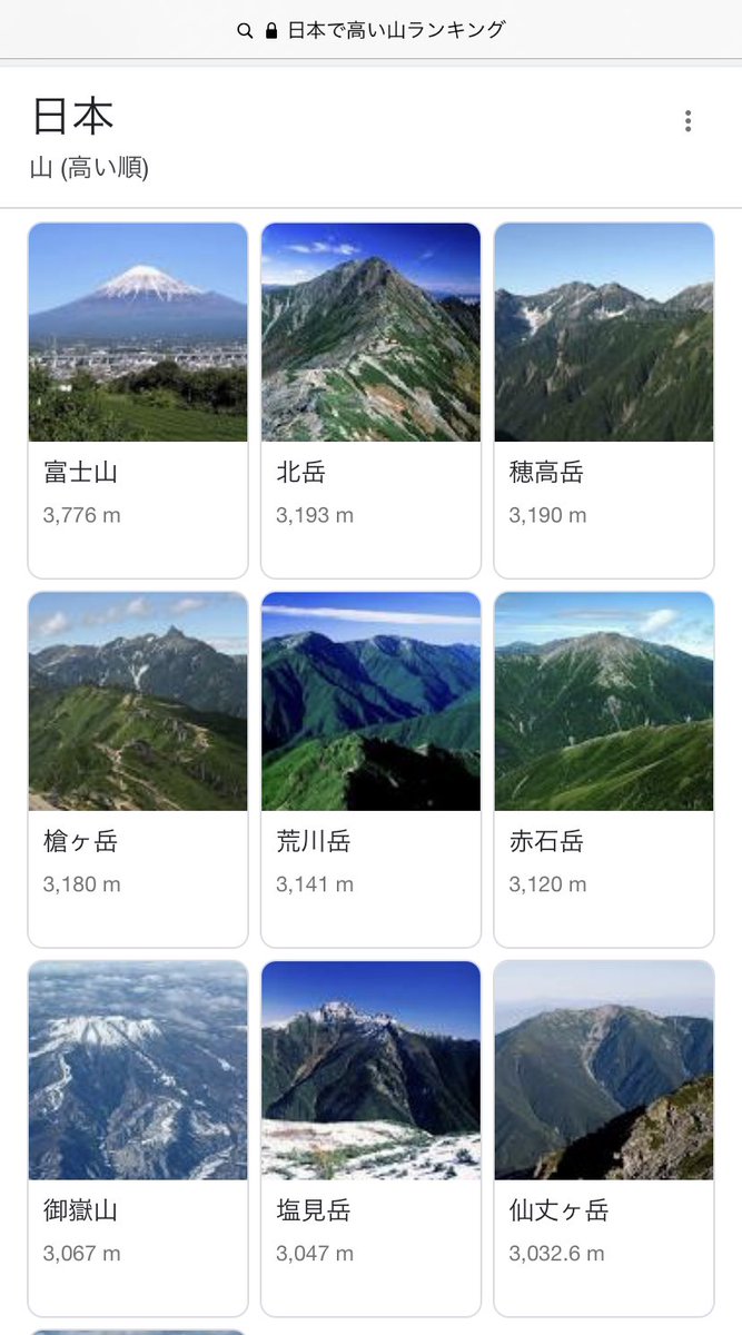 こういうツイート定期的にバズってるから奥穂高岳(3位)まで覚えてしまった https://twitter.com/mumukun66/status/1409494703251230720 …