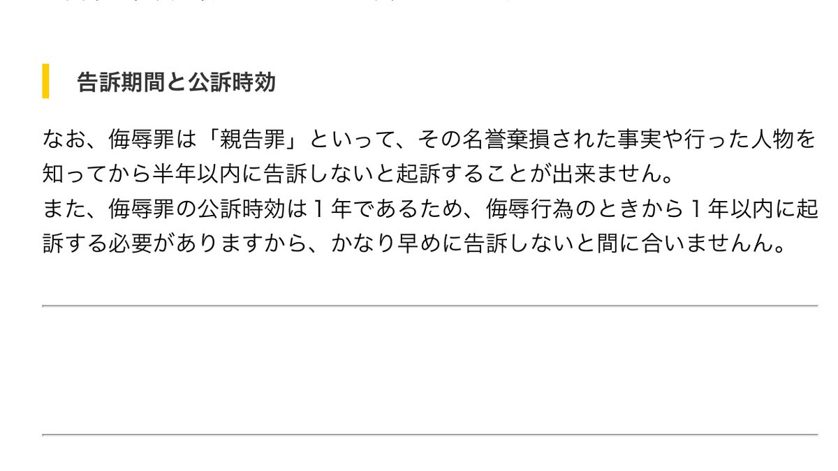 半年以内にがんばってね。あと、侮辱罪等で裁判する資金力がある家ってそんなになくって、よくても小遣い程度に示談金搾るところまで持ち込めるだけなんですよね。逆に言えば、追い込んではいけないわけです。だから、侮辱する側はツバ吐く程度に嫌がらせをするといいですよ。 https://twitter.com/sotoga_aoi/status/1527210280194695168 … pic.twitter.com/4Fcrb1tF6K