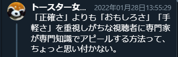 「「正確さ」よりも「おもしろさ」「手軽さ」を重視しがちな視聴者」 pic.twitter.com/Zswa8buwfw