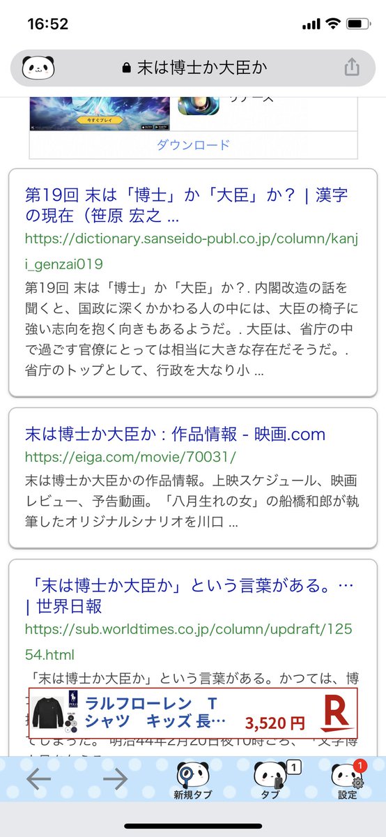 @k_kazika ちなみに「末は博士か大臣か」を楽天のポータルサイトで検索したら、こうなった。