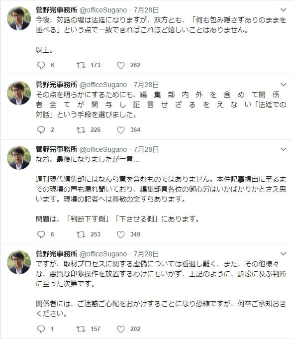 菅野完さん声明 「悪質な印象操作を行う週刊現代の画像を拡散した奴は開示請求かけるから」